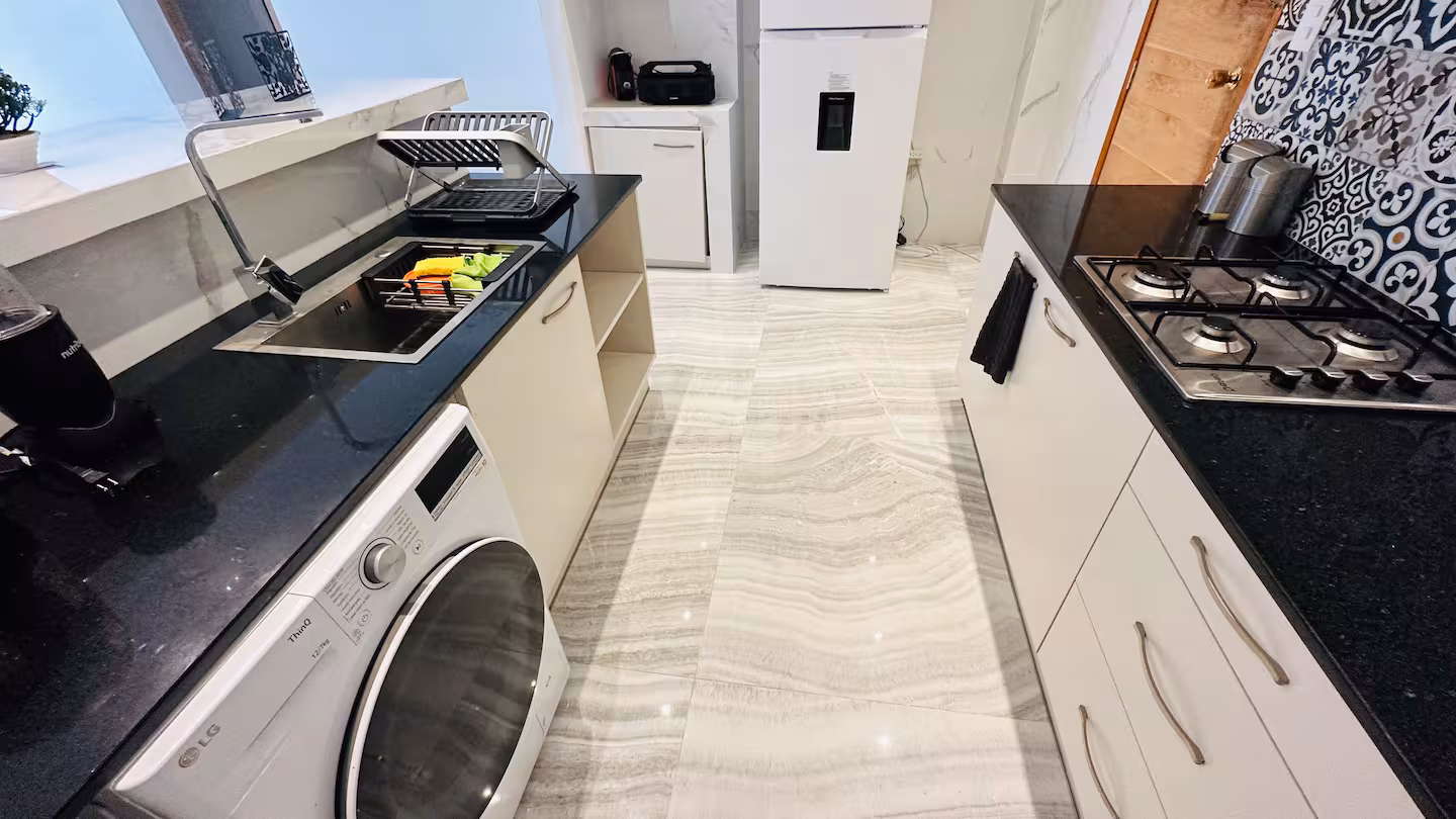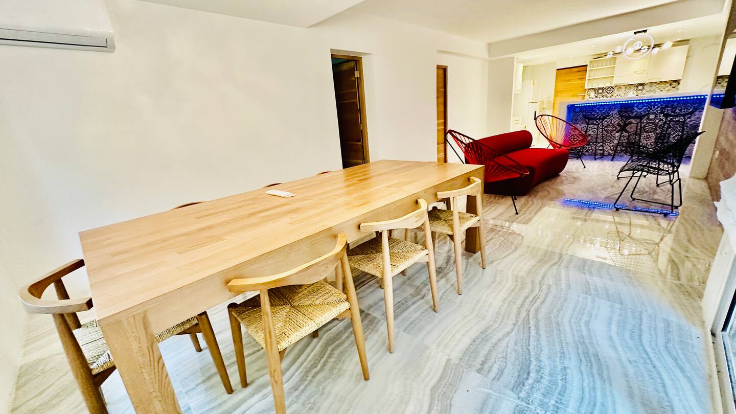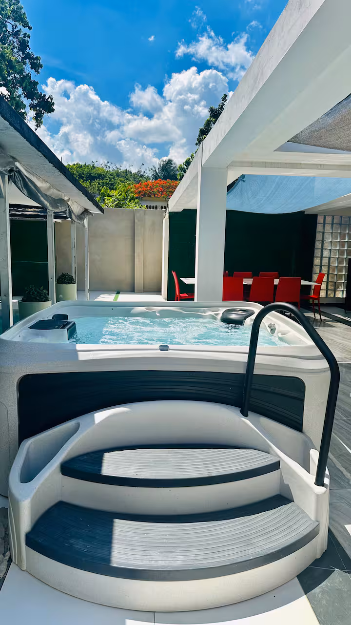 Cette villa offre trois chambres modernes, chacune entièrement climatisée, et trois salles de bains. La cuisine est entièrement équipée pour vos besoins culinaires. Les espaces de vie sont entièrement climatisés, avec accès Internet et Netflix pour le divertissement.