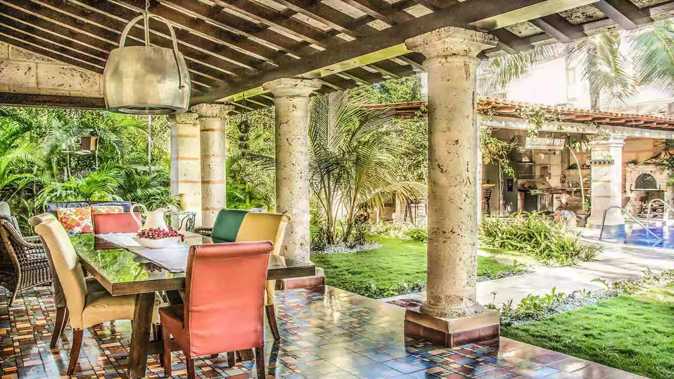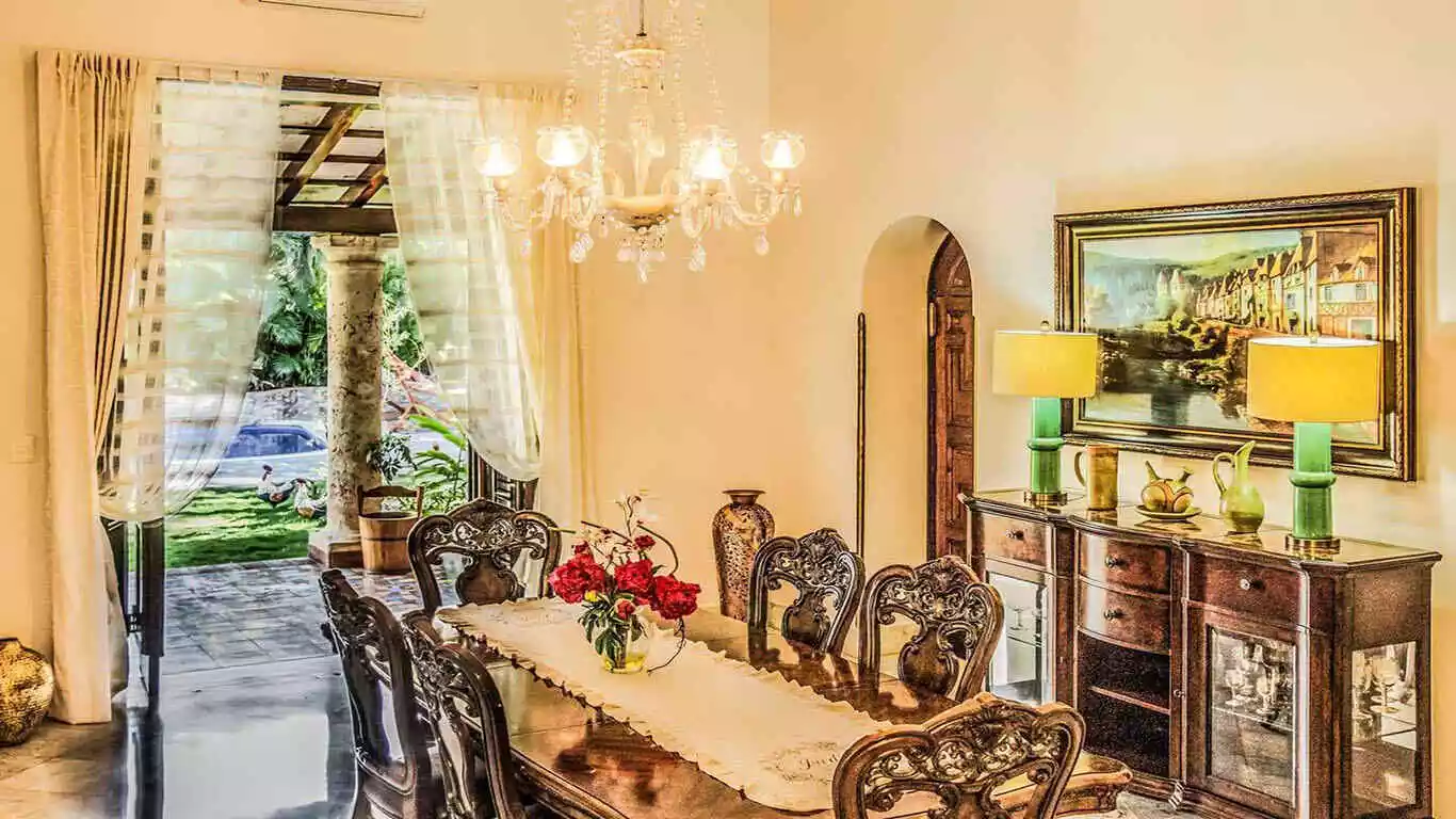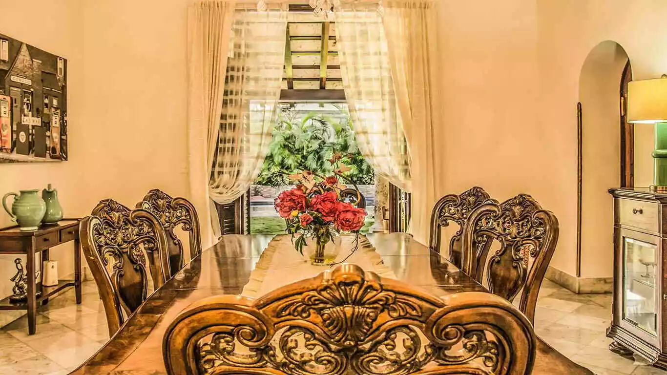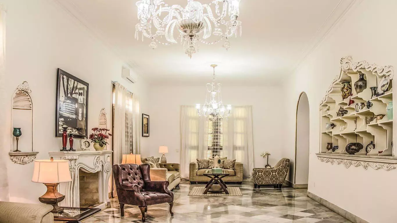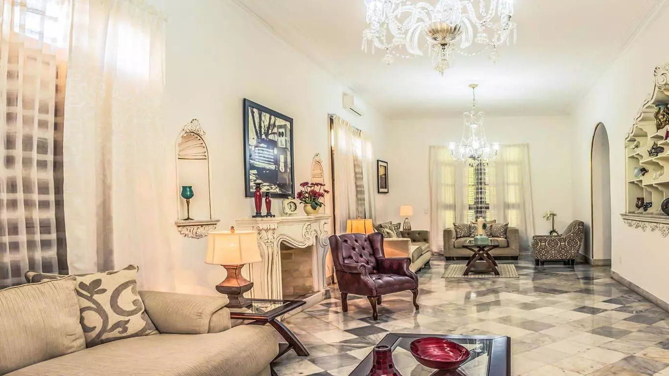Villa Castle is a stunning luxury home located in center of Miramar Havana. Just 100 meters from 5th Avenue this villa is conveniently situated only 5 minutes from Vedado and 10 minutes from historic Old Havana. Surrounded by a variety of prestigious restaurants, bars and trendy nightclubs it offers perfect blend of comfort and excitement. The villa has been fully renovated using top-quality materials and furnished with luxurious comfortable pieces to ensure relaxing stay. On the ground floor you will find a fully air-conditioned living room, a dining room and a well equipped kitchen. Step outside to enjoy a terrace with breakfast area, a beautiful garden and a ranch with a barbecue area. The inviting pool surrounded by sun loungers, is perfect for soaking up the sun. The upper floor boasts three terraces and several cozy seating areas ideal for enjoying warm Havana evenings.