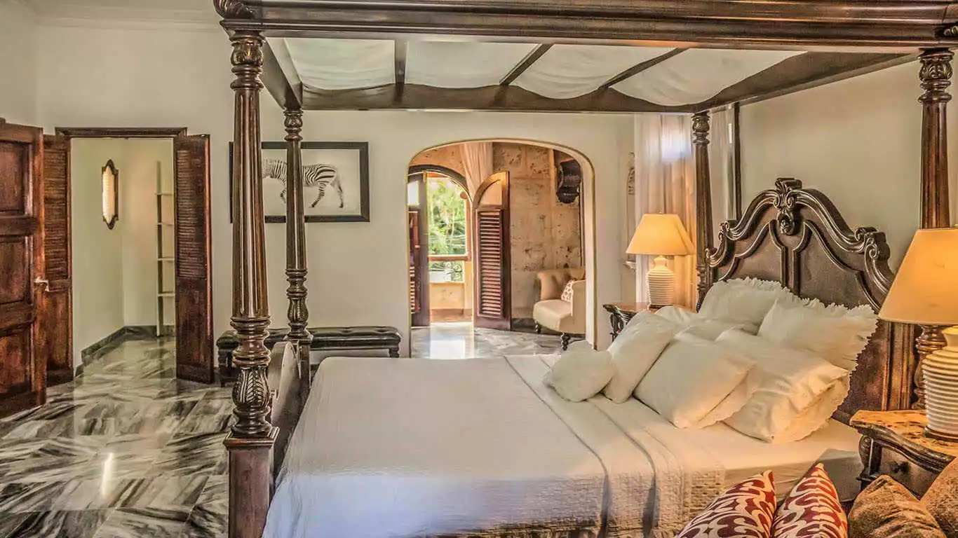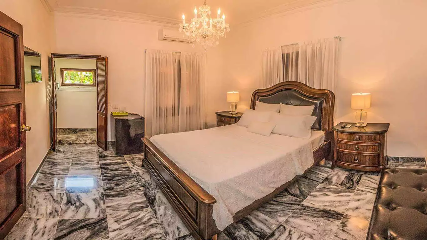 Castle features master suite which include a king-size bed, a comfortable sitting area with TV, a walk-in closet refrigerator and safe for your convenience. The spacious bathroom is equipped with a Jacuzzi and shower cabin and suite includes a private terrace with access to common terrace. Additionally Castle has other bedrooms designed with same luxurious features including queen-size beds, minibars safes ample closet space and bathrooms with shower cabins. Each room has windows that overlook the exterior, providing natural light and fresh air. Villa Castle is the perfect destination for those seeking a luxurious and comfortable stay in Havana combining modern amenities with the vibrant culture of the city.