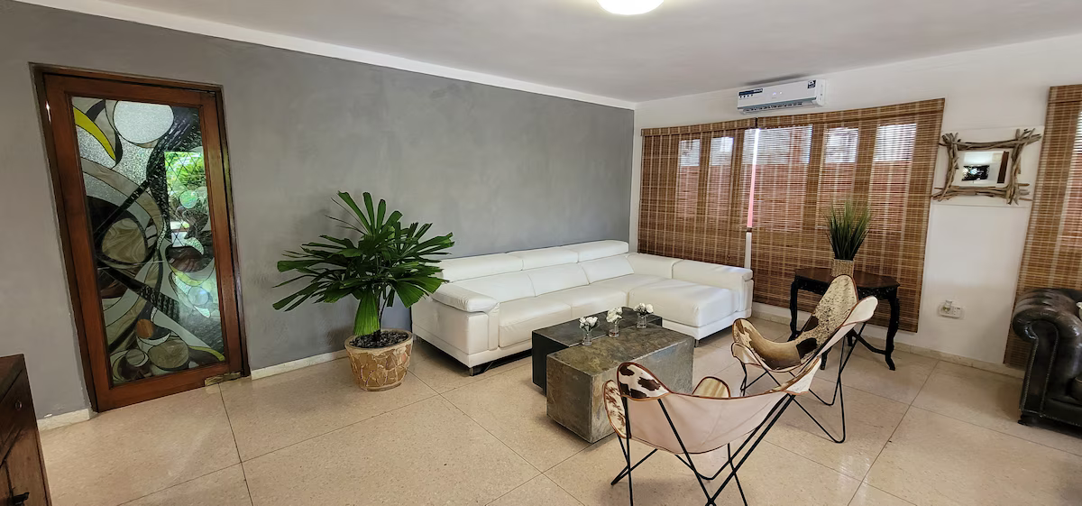 Villa Mariposa is a stunning villa located in Havana, perfect for those seeking comfort, luxury, and tranquility. The villa features a large garden filled with lush greenery and fruit trees, providing a peaceful oasis where guests can relax. The expansive pool is ideal for cooling off on hot Cuban afternoons, or for spending fun moments with family and friends. Villa offer privacy and serenity while being conveniently close to best Havana has to offer. Just a short 5-minute drive takes you to 5th Avenue, a major city street known for its beautiful architecture and vibrant atmosphere. You’ll also find a wide range of local restaurants, bars, Club Habana, Marina Hemingway, and exciting nightlife venues nearby making it easy to experience the cultural and social delights of the city.